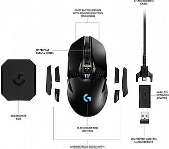 | סקירה | עכבר הגיימרים האלחוטי והאיכותי מבית Logitech מתאים את עצמו לסביבה שלכם ומגיע עם תוספת של 10 גרם משקולת לאיזון העכבר. בעל עיצוב אולטימטיבי עם קימורים לאחיזה בצורה טבעית אשר נועדה לנוחות מרבית לאורך שעות של שימוש ותאורת LED ב-16.8 מליון צבעים הניתנת להגדרה והתאמה אישית. בעל 11 כפתורים הניתנים לתכנות עם שמירת פרופילים, עשוי מחומרים איכותיים ומאפשר עד 50 מליון קליקים ועד 250 ק''מ עם חיישן אופטי המספק מהירות גבוהה, נותן דגש על דיוק ובעל רזולוציה של עד 12000DPI עם אפשרות שליטה ברמה. לעכבר אפשרות שימוש גם במצב אלחוטי וגם במצב חוטי בזמן טעינה. |